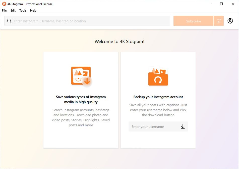 Instagram merupakan tempat untuk bersosial melalui posting gambar dan video yang semestinya amat diperlukan bagi sesetengah individu yang suka untuk mengemaskini kehidupan hariannya. Dan pasti anda tidak merasa puas hanya sekadar menonton sahaja tanpa menyimpannya. Pasti terdetik di hati anda untuk memiliki atau menyimpan gambar dan video tersebut. Dengan 4K Stogram Professional 4.6.3.4500 Full Version, semua itu tidak mustahil lagi. Ia merupakan aplikasi downloader untuk instagram yang mana anda hanya perlu masukkan nama pengguna intagram, #hashtag atau carian tempat dan klik subscribe. Secara automatik, ia akan mendownload semua gambar dan video yang ada dalam instagram pengguna tersebut.