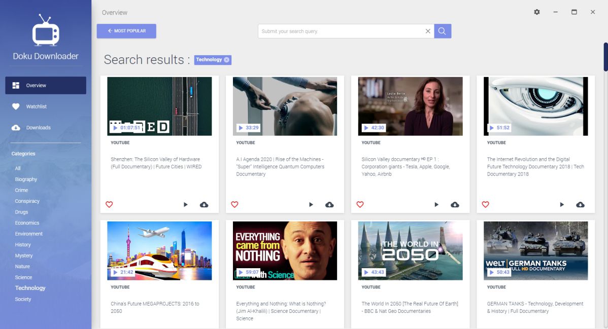 No matter where you watch the next documentary – the Documentation Downloader does everything. View a documentation directly in the program or download it as a video.