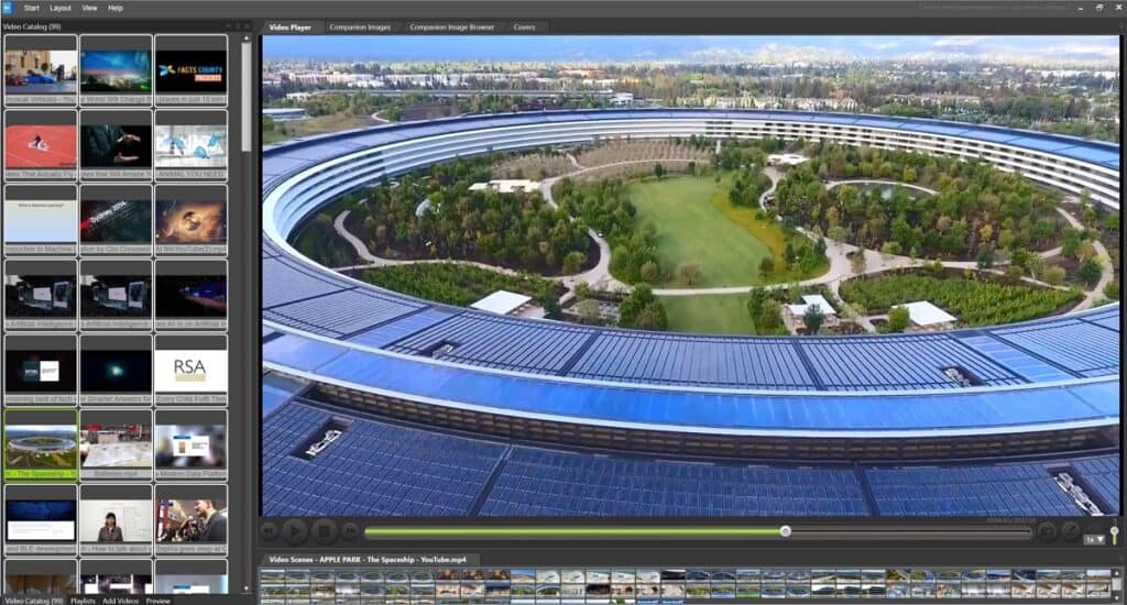 Fast video cataloger comes with an integrated video player that can start playing videos right from the time of a captured thumbnail.